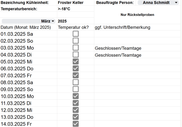 📌 Erstellen & verwalten Sie HACCP-Listen für Kühlgeräte, Mitarbeiter und Caterings